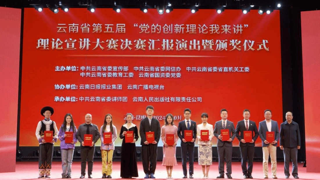 10月14日至16日,云南省第五届“党的创新理论我来讲”理论宣讲大赛决赛在昆明市抗战胜利纪念堂举行,大赛由中共云南省委宣传部、中共云南省委网信办、中共云南省委省直机关工委、中共云南省委教育工委、云南省国资委党委主办,云南日报报业集团、云南广播电视台协办,中共云南省委讲师团、云南人民出版社承办。