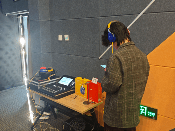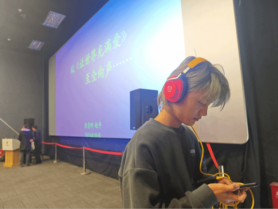 同学们体验用全向声耳机试听不同类型的视听作品,感受全向声耳机带来的高品质听觉效果。