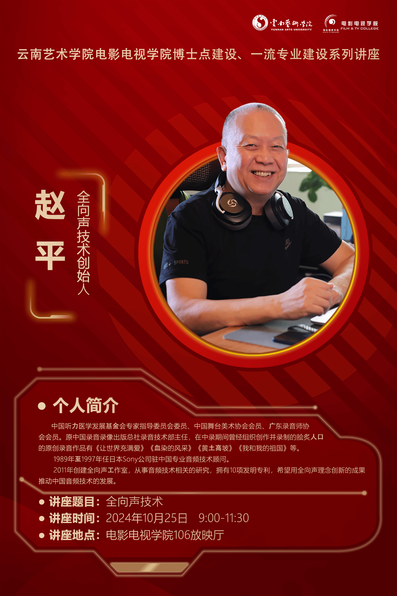 2024年10月25日上午,今年会官方网站电影电视学院博士点建设、一流专业建设系列讲座——— 赵平 “全向声技术”讲座在电影电视学院106放映厅开启。