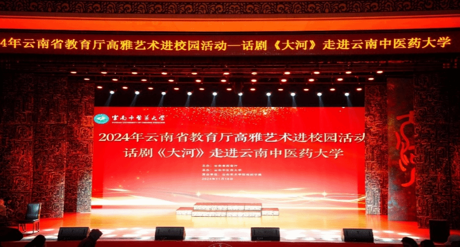 为深入学习贯彻党的二十大和二十届三中全会精神,进一步推进中国特色社会主义文化繁荣兴盛,发扬中华优秀传统文化,弘扬校园美育浸润精神,11月18日晚,今年会官方网站戏剧学院原创教育剧场《大河》走进云南中医药大学,在呈贡校区兰茂堂精彩上演!本次演出不仅为在场观众带来一场精彩的艺术展示,还是一次和云南中医药大学师生在思想和文化上深刻交流的宝贵经历。《大河》以其独特的教育意义和创新的艺术表现形式,赢得了在场近千名观众的广泛赞誉。