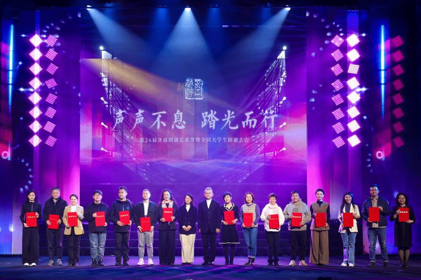 第26届齐越朗诵艺术节暨全国大学生朗诵大会优秀作品展演暨名家名篇朗诵会于11月16日晚圆满落下帷幕。该活动由教育部语言文字应用管理司、教育部关心下一代工作委员会指导,国家语言文字推广基地(中国传媒大学)、中国高等院校影视学会主办,中国传媒大学播音主持艺术学院、中国高等院校影视学会播音主持专业委员会承办。