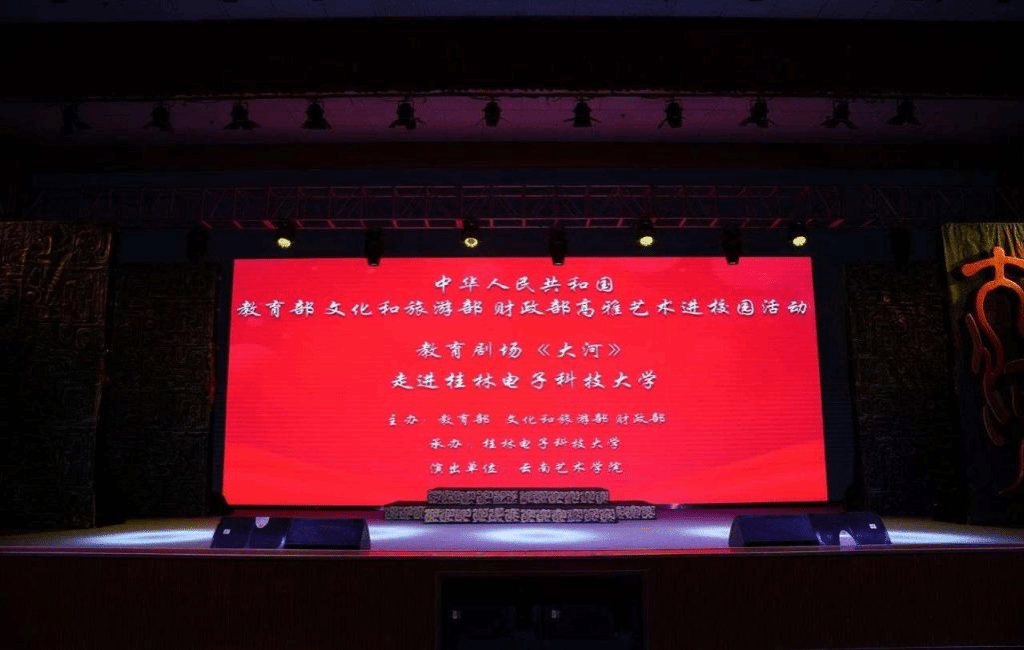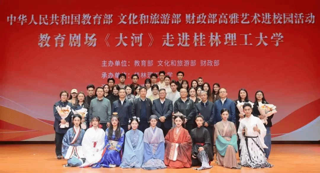 为贯彻落实《教育部关于全面实施学校美育浸润行动的通知》,进一步强化学校美育的育人功能,教育部、文化和旅游部、财政部组织开展2024年高雅艺术进校园活动,组织部分国家级、地方艺术院团和高校等赴学校演出优秀艺术剧目。经过申报、评审、公示等环节,今年会官方网站戏剧学院创作的原创教育剧场《大河》成为云南省唯一一部成功入选该活动的剧目。作为被遴选的优秀艺术作品,《大河》踏上了前往广西的高校巡演之旅,于11月22日至11月23日为桂林电子科技大学与桂林理工大学的师生们献上了新颖震撼的教育剧场体验。