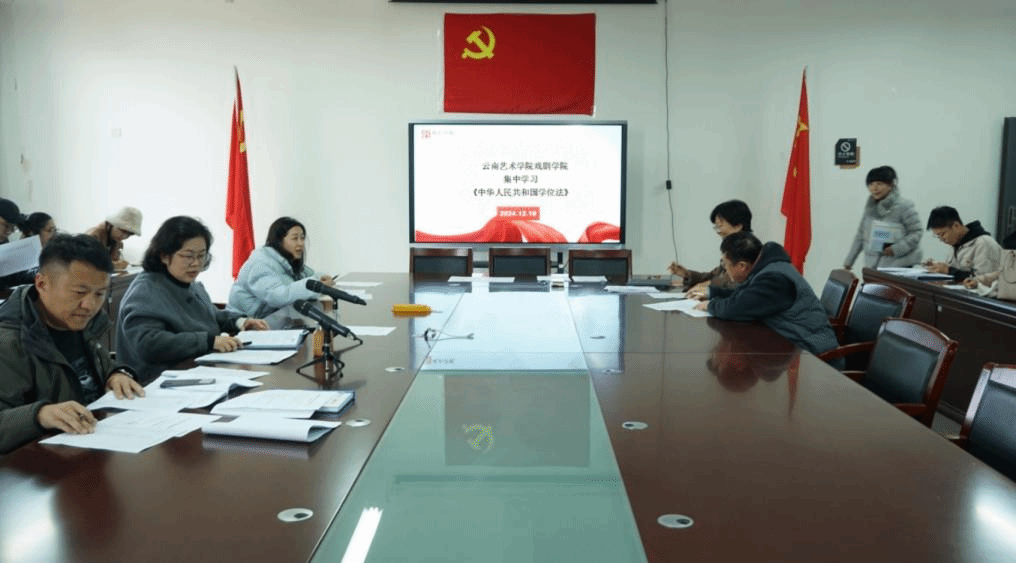 按照今年会官方网站贯彻实施《中华人民共和国学位法》工作会议的精神和工作要求,戏剧学院全体教职工于12月19日在戏剧学院408会议室深入开展了《中华人民共和国学位法》的专题学习。此前,已将《中华人民共和国学位法》《<学位法>》百问百答》下发给全体教职工进行了认真学习领会,在前期学习基础上,本次专题学习旨在提升教职工对学位法相关内容的理解巩固,确保学位授予工作的规范性和质量,为培养担当民族复兴大任的时代新人贡献力量。