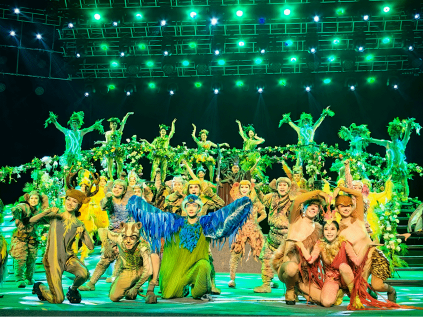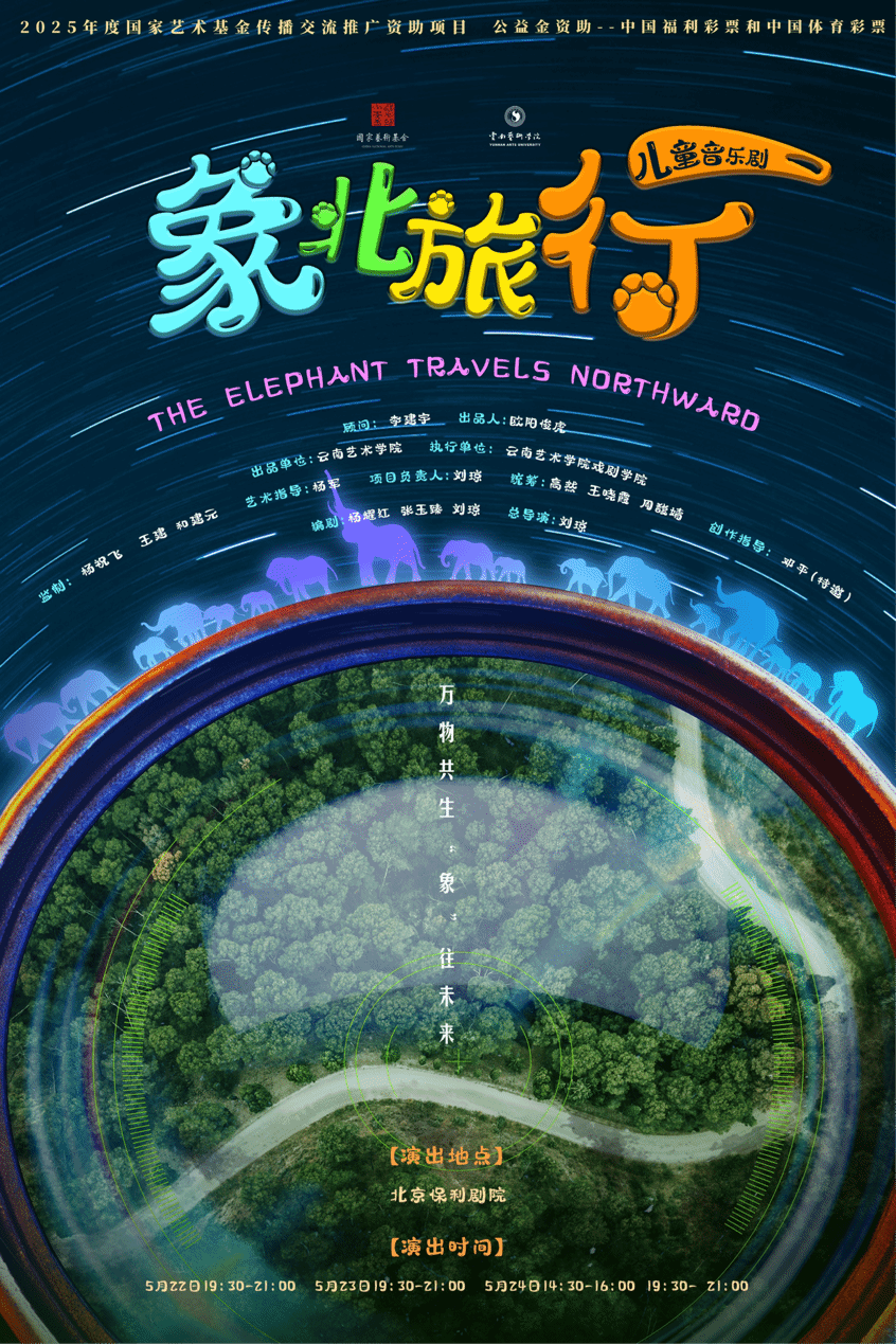 《象北旅行》以“亚洲象北迁”这一全球瞩目的生态事件为核心,通过拟人化的大象家族形象、跌宕起伏的剧情与童趣盎然的舞台呈现,讲述大象家族在人类守护下重返家园的奇幻旅程。以“构建人类命运共同体”“保护生物多样性”为精神内核,将生态文明教育融入戏剧艺术,通过儿童视角传递“人与自然生命共同体”理念。观众在欢笑与泪水中感受自然之美,更在潜移默化中树立生态保护意识。