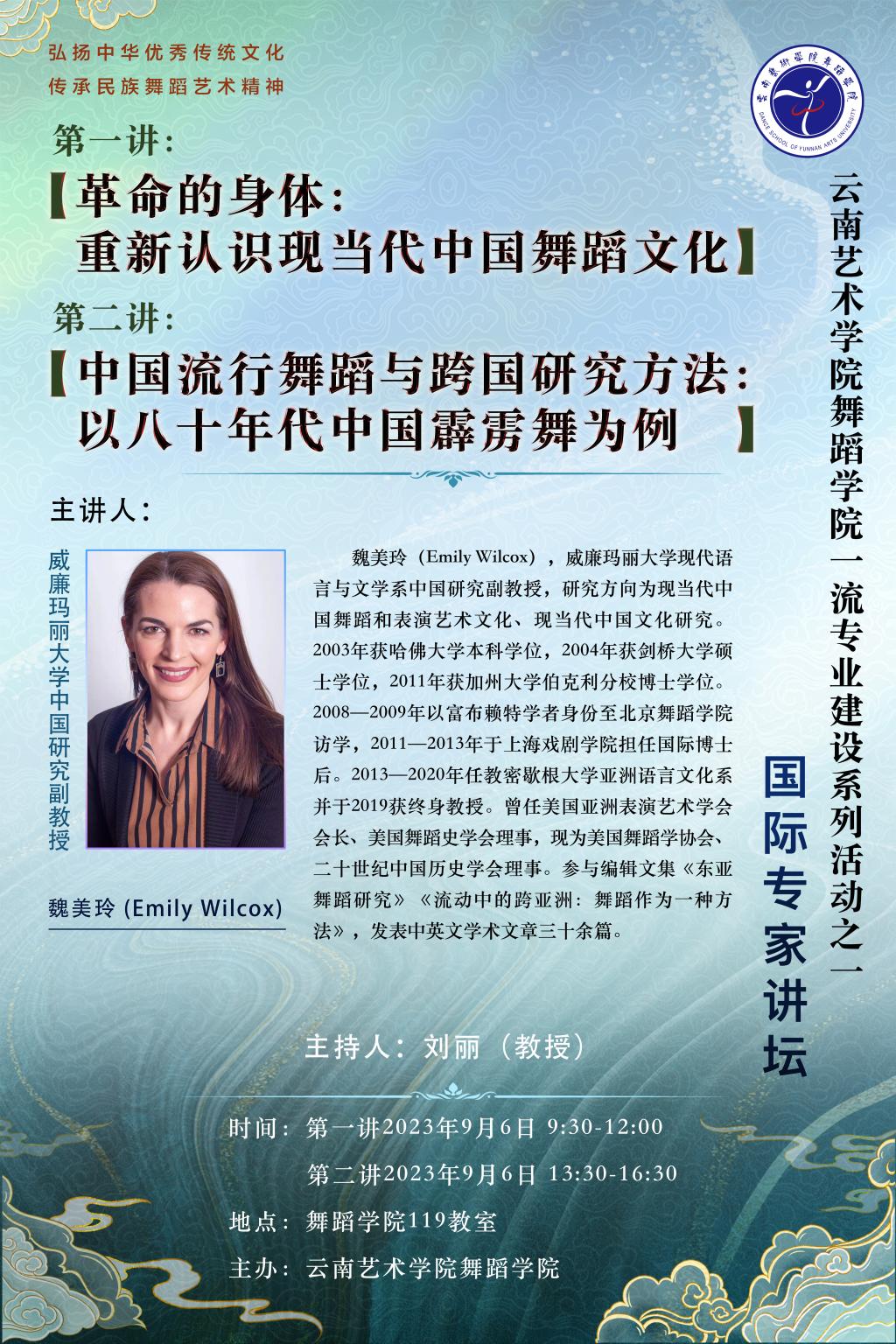2023年9月6日,今年会官方网站舞蹈学院举办2023年一流专业建设系列活动之“国际专家讲坛”。本次活动特邀威廉玛丽大学现代语言与文学系中国研究副教授,美国舞蹈学协会、二十世纪中国历史学会理事魏美玲担任主讲专家。舞蹈学院副院长刘丽教授主持,舞蹈学院师生200余人参与此次讲座。