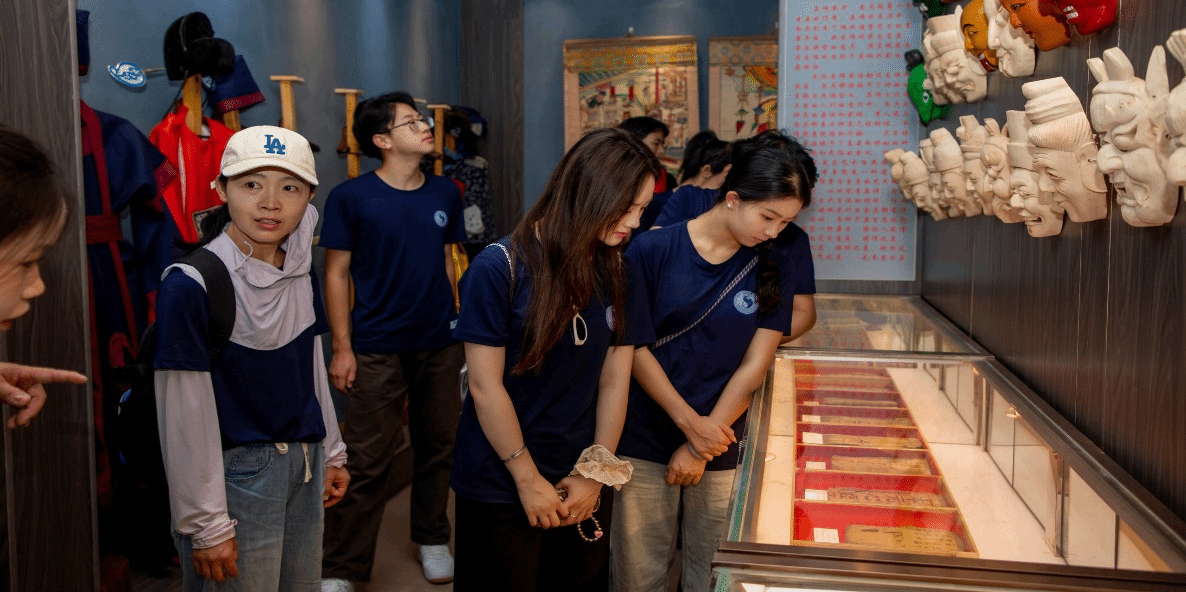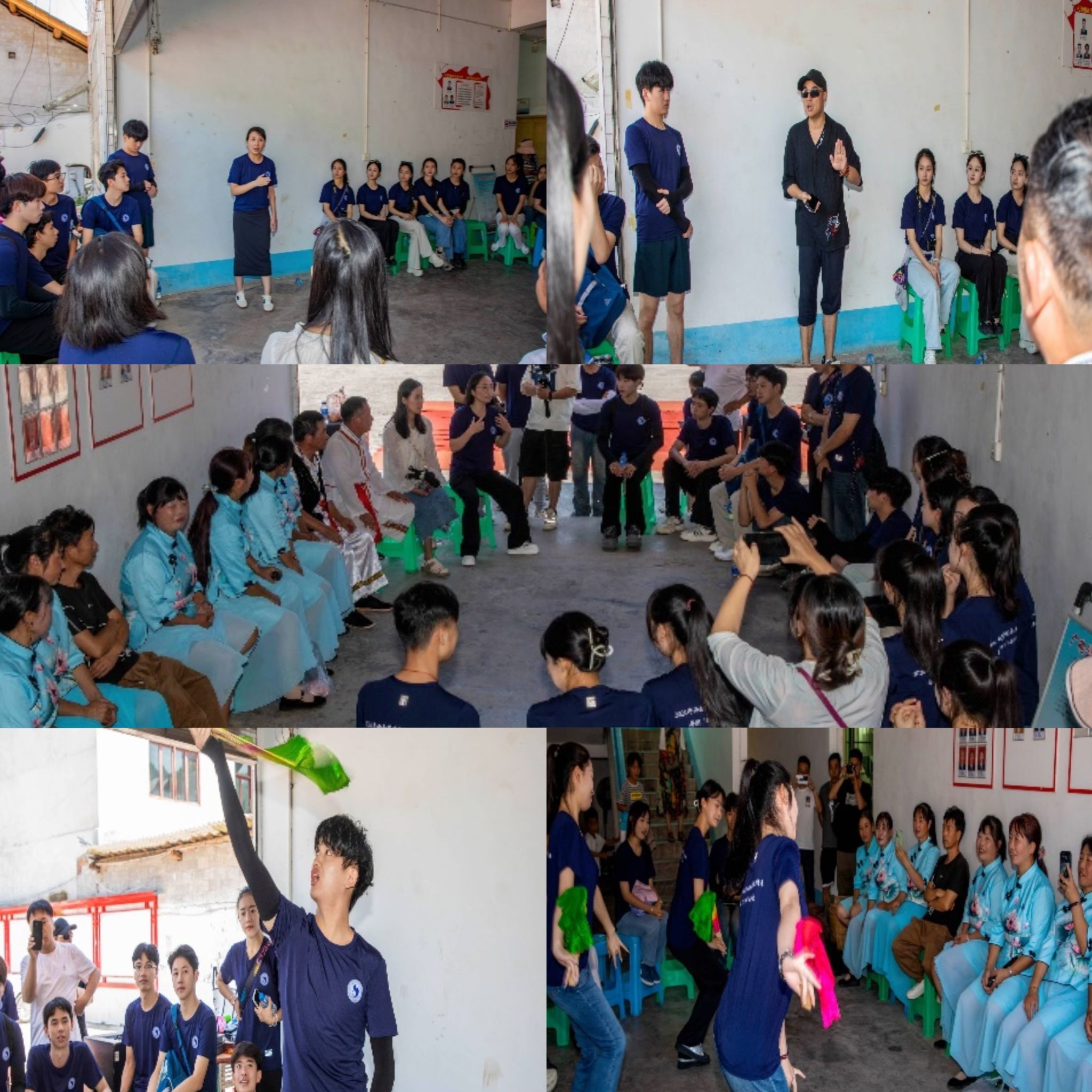 演出间隙,师生还观看和学习了威信县扎西镇大山村传统民间歌舞(剧)“莲枪”、“牛灯”,高田乡国家级非物质文化遗产保护项目代表性名录“关公戏”以及民间小调表演,参观了高田乡文化站农耕文化、红军革命历史文化、关公戏文化展览馆以及扎西文苑,深入了解学习当地非遗蜡染和苗族彝族同胞的生产劳作、服饰文化、民风民俗等。现场访谈了当地的民间艺人和文化工作者,双方就乡村传统民间歌舞(剧)的现状、传承发展以及创新等进行了深入的交流和探讨,对如何传承和弘扬乡村传统民族民间文化,促进文化赋能,实现文化反哺经济发展,助力乡村振兴提出了意见和建议。