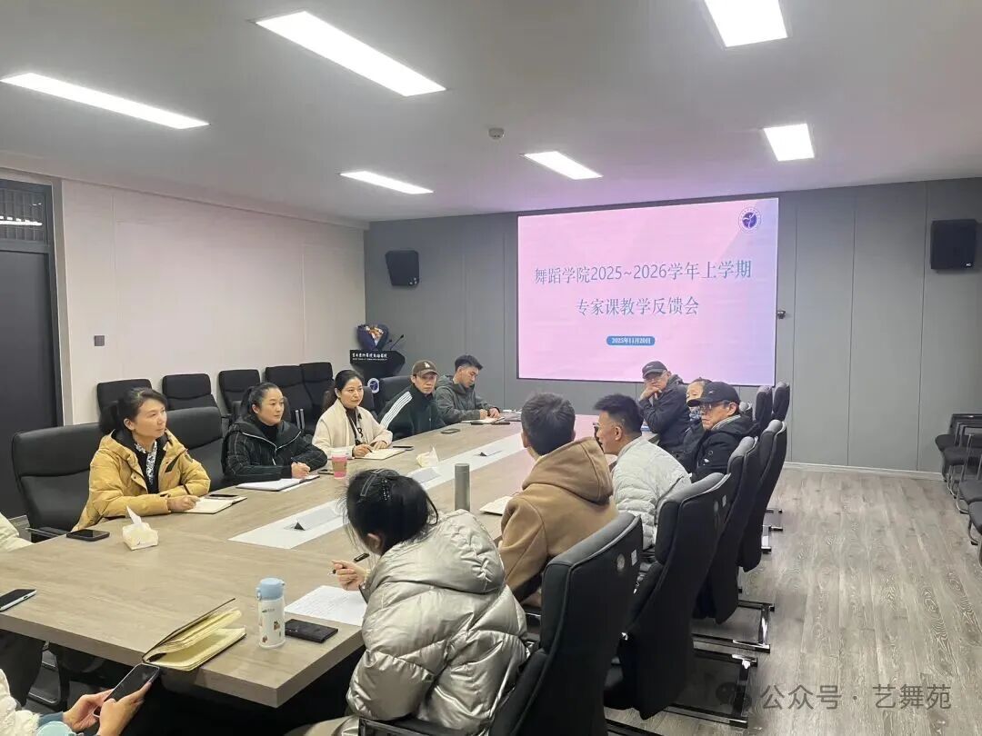 2025年11月20日,舞蹈学院召开2025-2026学年上学期专家课教学反馈会,三位专家、学院领导班子成员、各系部主任及教师代表共同参会。会议聚焦专家授课成效复盘、教学现状剖析及人才培养优化,旨在精准把握教学痛点,为一流专业和一流课程建设蓄力赋能。